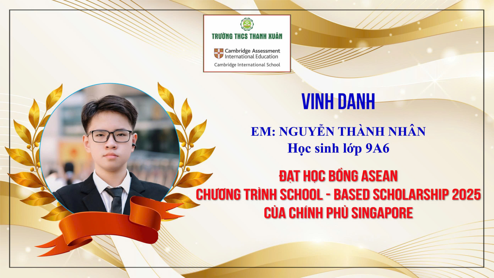 Nhà trường chúc mừng học sinh Nguyễn Thành Nhân - 9A6 xuất sắc giành học bổng ASEAN, chương trình School – Based Scholarship 2025.